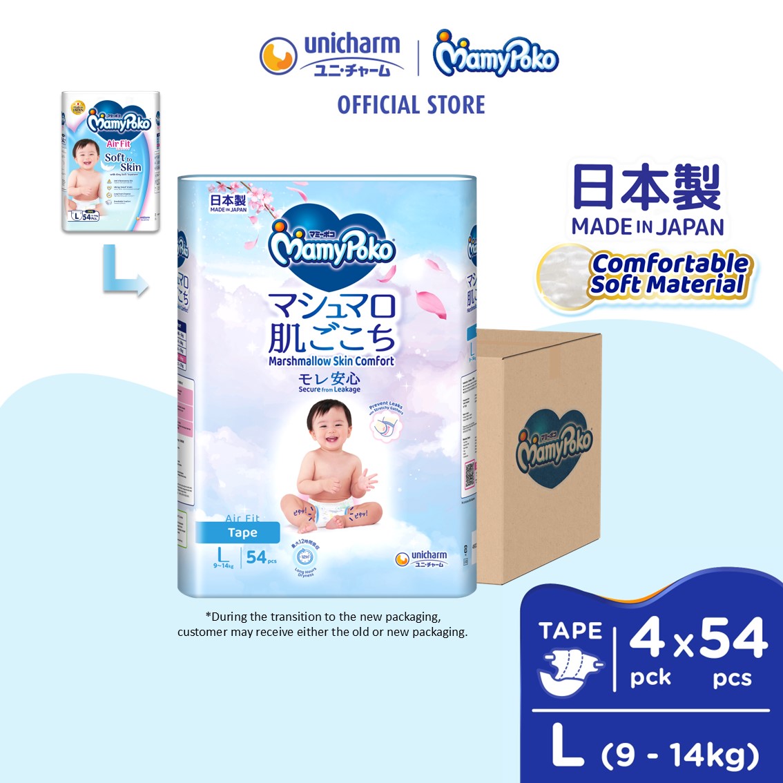 | Size | L (9-14kg), M (6-11kg), NB (up to 5kg), S (4-8kg), XL (12-17kg) |